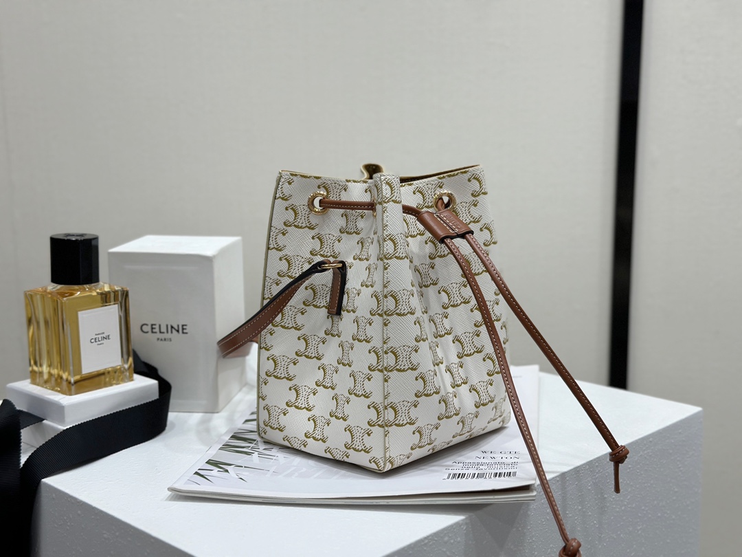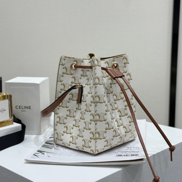 [백경] 셀린느 마이크로 세일러 캔버스 앤 카프스킨 화이트 탄 버킷백