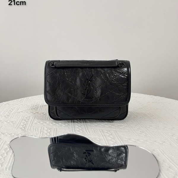 [블랙 프레임] 생로랑 블랙 체인 스트랩 빈티지 레더 블랙 니키 베이비 숄더백 633160
