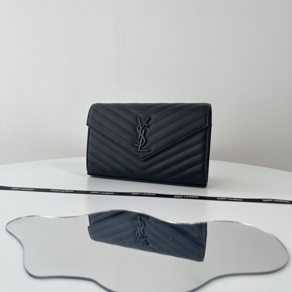 [블랙 프레임] 생로랑 그랑 드 뿌드르 엠보스 레더 카산드라 마틀라세 올 블랙 숄더백 377828