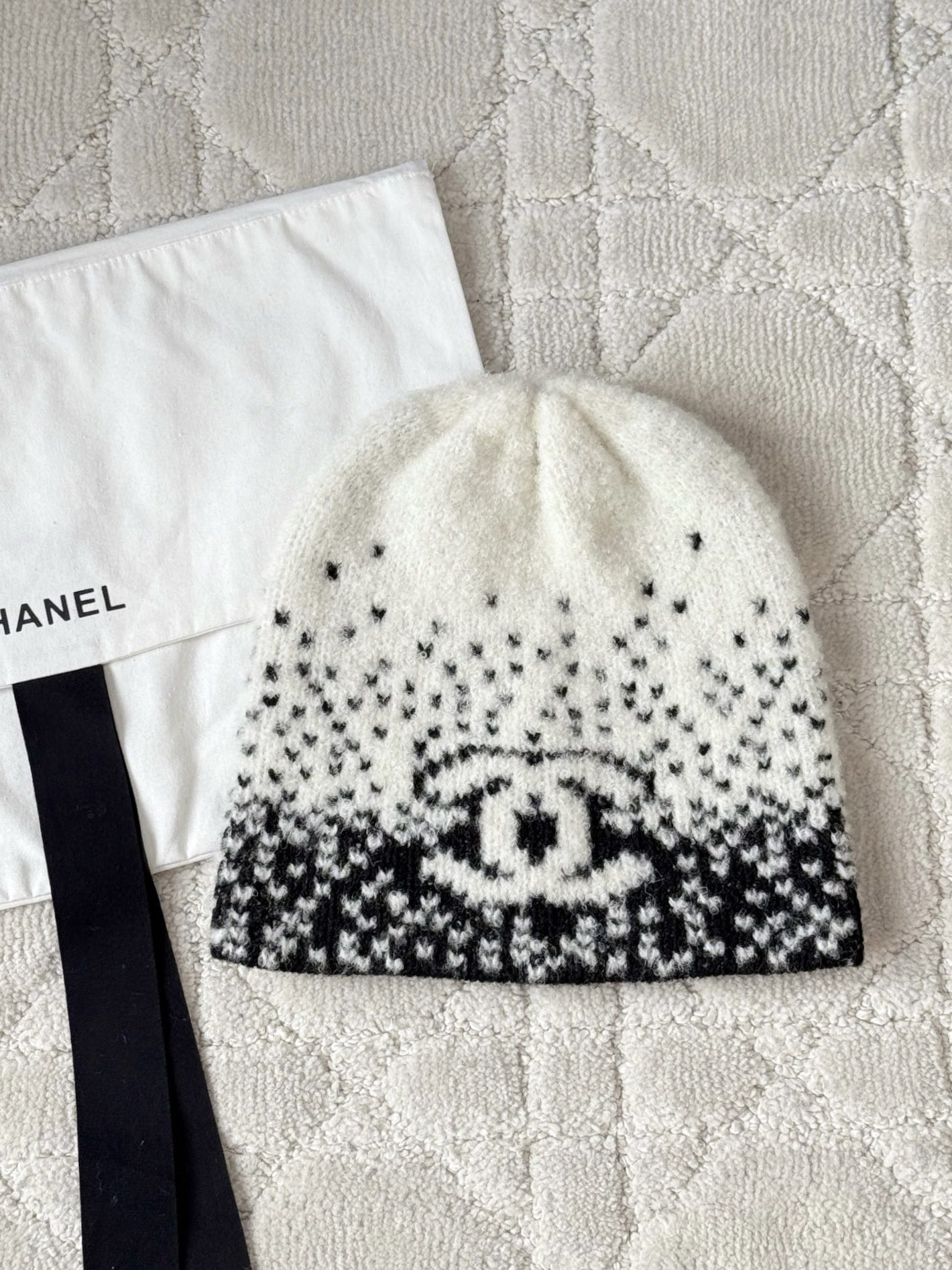 제품명 : 샤넬 화이트 블랙 울 캐시미어 비니