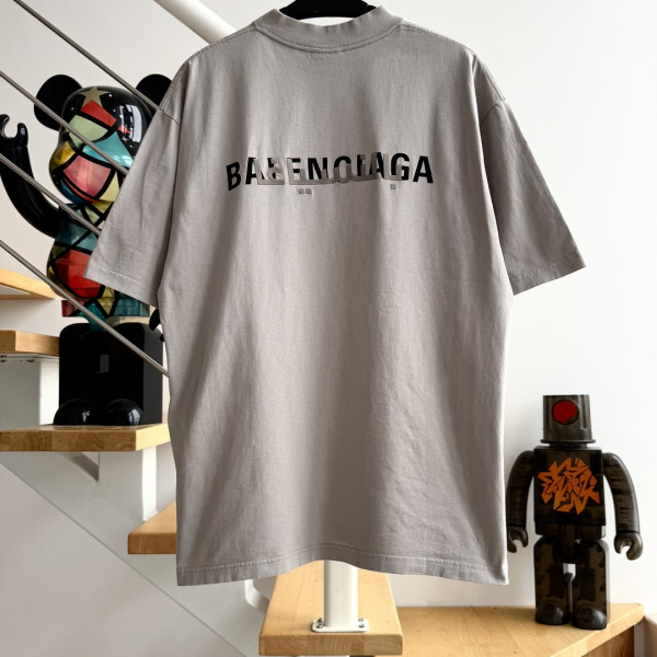 [계단] 발렌시아가 로고 워시드 베이지 티셔츠