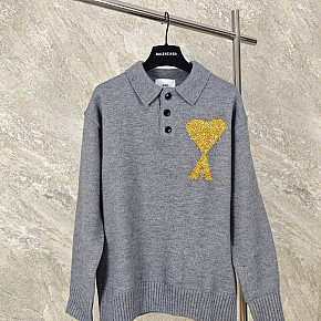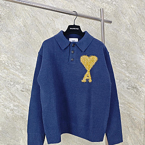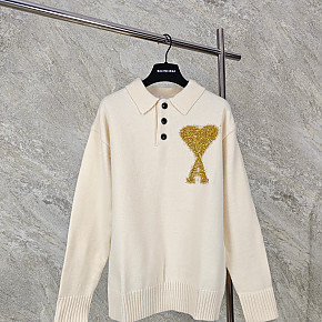 제품명 : [GTR공장] 아미 빅 하트 로고 크림 화이트 니트 긴팔 폴로티