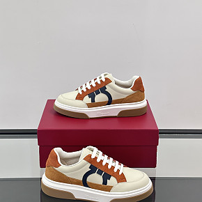 페라가모 간치치 패치 에크루 브라운 스니커즈