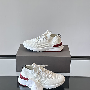 브루넬로 쿠치넬리 니트 러너 화이트 레드 스니커즈