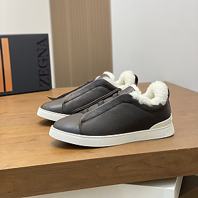 제냐 디어스킨 트리플 스티치 다크 브라운 스니커즈