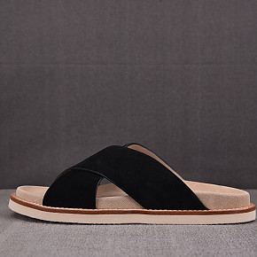 [GD공장] 브루넬로 쿠치넬리 스웨이드 크로스오버 블랙 베이지 슬리퍼