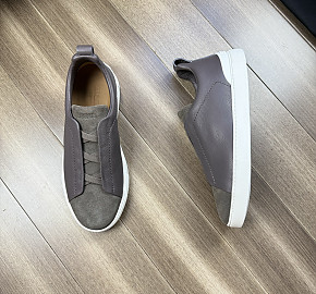 제냐 트리플 스티치 다크 그레이 레더 스니커즈