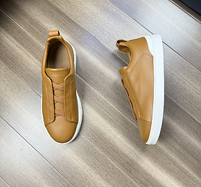 제냐 트리플 스티치 다크 베이지 레더 스니커즈