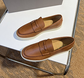 브루넬로 쿠치넬리 레더 브라운 솔로메오 로고 로퍼