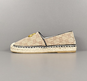 구찌 GG 마테라세 에스파듀 베이지 블랙 우먼스 플랫 슈즈