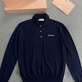 [TJ공장] 미우미우 로고 네이비 울 니트 긴팔 폴로티
