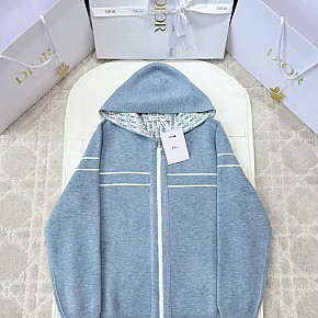 디올 오블리크 패턴 리버시블 블루 캐시미어 니트 후드 가디건 여성복
