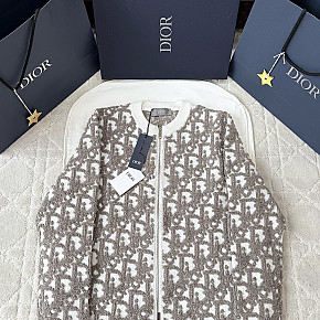 디올 오블리크 패턴 블렌드 자카드 화이트 집업 가디건