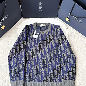 디올 오블리크 패턴 자카드 블루 울 니트 스웨터