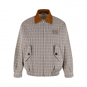 [잔디집] 미우미우 로고 체크 코코아 브라운 블루종 자켓