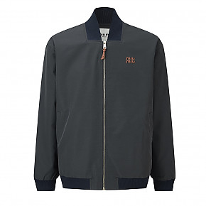 [잔디집] 미우미우 로고 패치 다크 그레이 봄버 자켓
