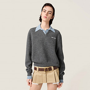 [잔디집] 미우미우 캐시미어 니트 그레이 블루 긴팔 폴로티 여성복