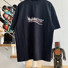 [계단] 발렌시아가 웨이브 로고 스텐실 블랙 티셔츠