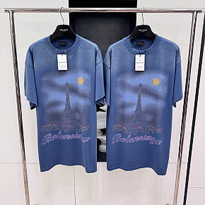 [V공장] 발렌시아가 PARIS 문 블루 워싱 티셔츠
