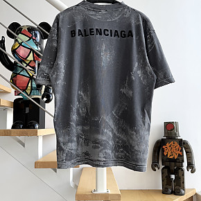 [계단] 발렌시아가 로고 워시드 그레이 티셔츠