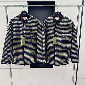 [V공장] 구찌 인터로킹G 체크 울 깅엄 멀티컬러 자켓
