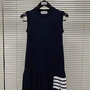 [TJ공장] 톰브라운 4바 플리츠 슬리브리스 네이비 미니 드레스 여성복