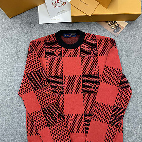 [TJ공장] 루이비통 다미에 체크 레드 울 크루넥 니트 스웨터