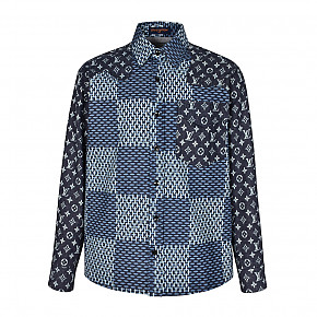 [잔디집] 루이비통 X 니고 자이언트 다미에 모노그램 프란넬 블루 셔츠