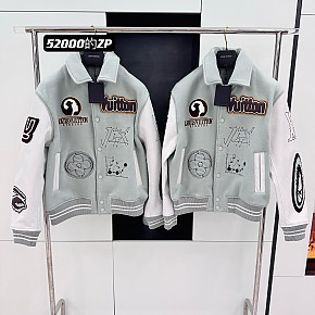 [V공장] 루이비통 레더 그레이 블루종 바시티 자켓
