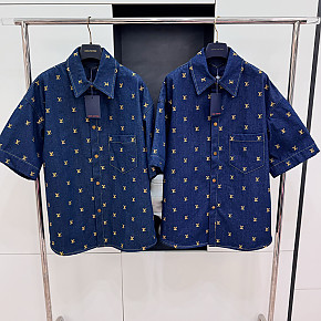 [V공장] 루이비통 LV로고 블루 데님 반팔 셔츠