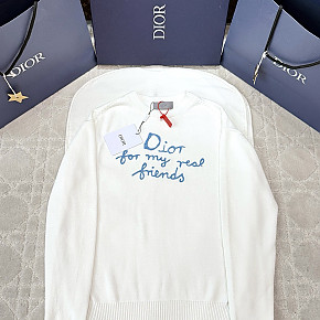 디올 X 힐톤 넬 레터링 자카드 화이트 니트 스웨터