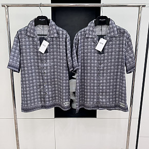 [V공장] 디올 까나쥬 트윌 실크 블루 반팔 셔츠