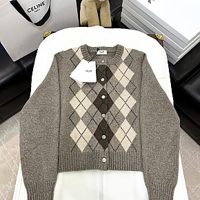 [V공장] 셀린느 아가일 알파카 그레이 울 가디건 여성복