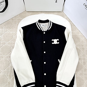 [V공장] 셀린느 트리오페 로고 네이비 울 테디 바시티 자켓