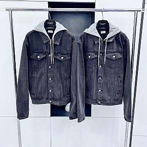 [V공장] 셀린느 후드 트러커 블랙 데님 자켓
