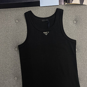 [TJ공장] 프라다 금장 플레이트 블랙 니트 탱크 탑 여성복