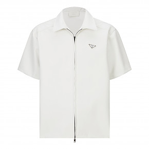 [잔디집] 프라다 나파 레더 화이트 집업 반팔 셔츠