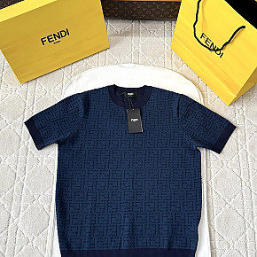 [V공장] 펜디 FF 셀러리아 블루 반팔 니트 스웨터