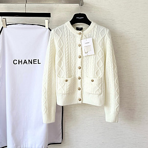 샤넬 캐시미어 실크 화이트 가디건 여성복