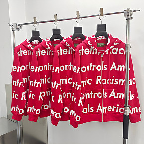 [A팔] 데님 티어스 X 아르튀르 자파 시스테믹 레터링 레드 후드집업