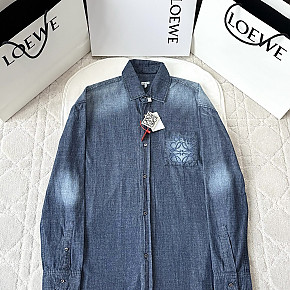 로에베 아나그램 로고 워시드 블루 샴브레이 셔츠