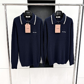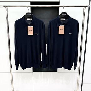 [V공장] 미우미우 로고 블랙 네이비 울 니트 긴팔 폴로티