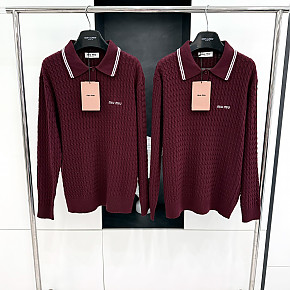 [V공장] 미우미우 로고 버건디 긴팔 폴로티
