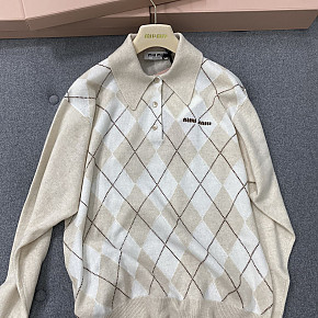 [TJ공장] 미우미우 아가일 캐시미어 베이지 니트 스웨터