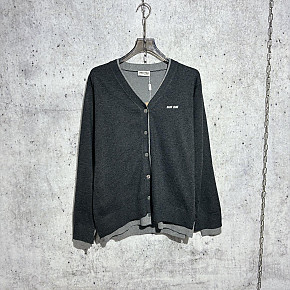 [사슬공장] 미우미우 로고 다크 그레이 실크 캐시미어 가디건
