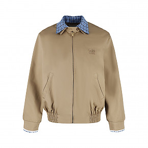 [잔디집] 미우미우 로고 체크 치노 베이지 블루종 자켓