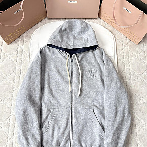 미우미우 로고 리버시블 후드집업 그레이 네이비 블루종 자켓