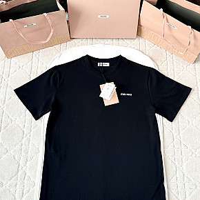 [V공장] 미우미우 로고 블랙 티셔츠 여성복