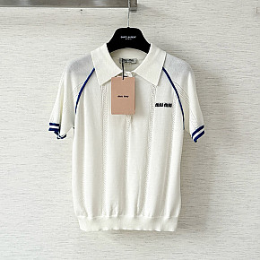 [V공장] 미우미우 로고 화이트 니트 폴로티 여성복