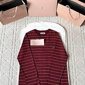 [V공장] 미우미우 로고 스트라이프 레드 롱 슬리브